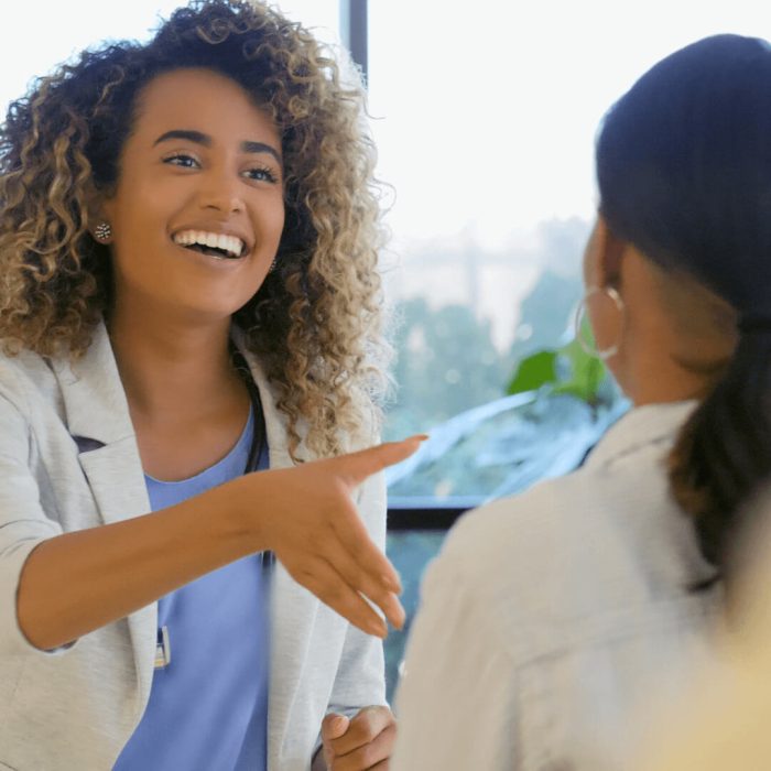 Lady smiling shaking hand